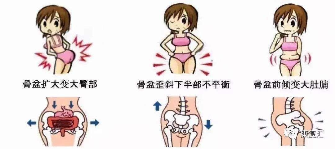 骨盆变形会使下半身的血液循环以及新陈代谢变慢变差,这时下半身很容易堆积赘肉,腰部松垮臀部变大,还会引发多种妇科疾病。